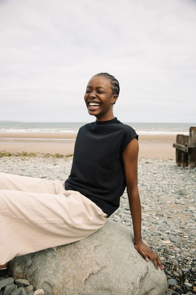 The Aukai is a loose fitting vest style with a cap sleeve and a high neckline. Perfect for layering and made from our super soft 100% organic cotton jersey. THINGS TO KNOW: - Made from 100% Organic Cotton - Made ethically in Portugal - Machine washableSIZE & FIT: Elizabeth is 5'10" and wears a size small. This style is a Classic fit SUSTAINABILITY Fabric Composition: 100% Organic Cotton Origin: Guimaraes, Portugal Spun/Woven Factory: ETEVIMOL Location: Barcelos, Portugal Dyed
