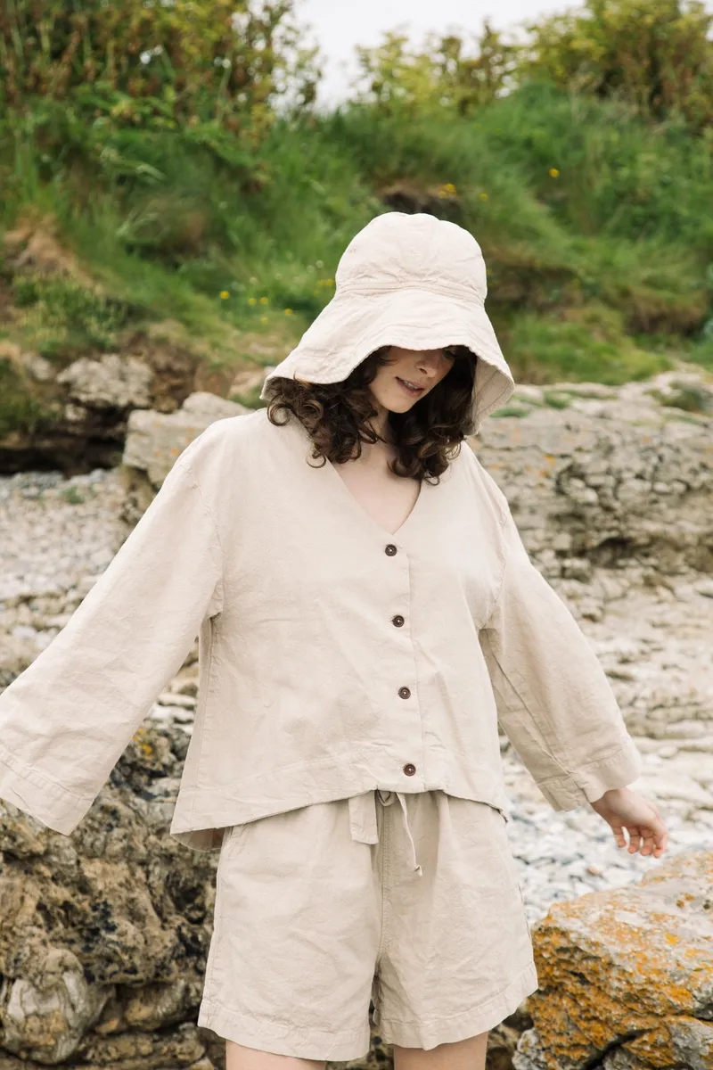 Part of our Premium Cotton / Linen capsule collection, the Calder is a button down shirt with a V-neckline and 3/4 length sleeves. Co-ordinates perfectly with the Honor-May Shorts as part of a set. THINGS TO KNOW: - Made from our premium weight 55% Cotton, 45% Linen blend fabric - Made ethically in Portugal - Machine washable SIZE & FIT: Model is 5'10" and wears size Small This style a Classic Fit