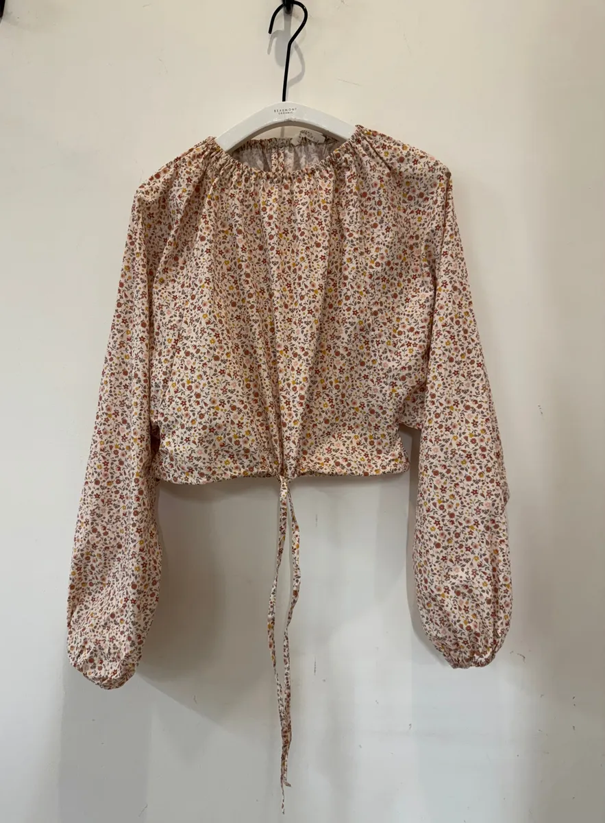 The Chaya top is an elegant blouse style featuring balloon sleeves with soft gathered elastic neckline & cuffs and drawstring hem. THINGS TO KNOW: - Made from 100% organic cotton - Made ethically in Portugal. - Machine washable. SIZE & FIT: Model is 5'9" and wears size Small This style is a Classic Fit CONDITION: Excellent