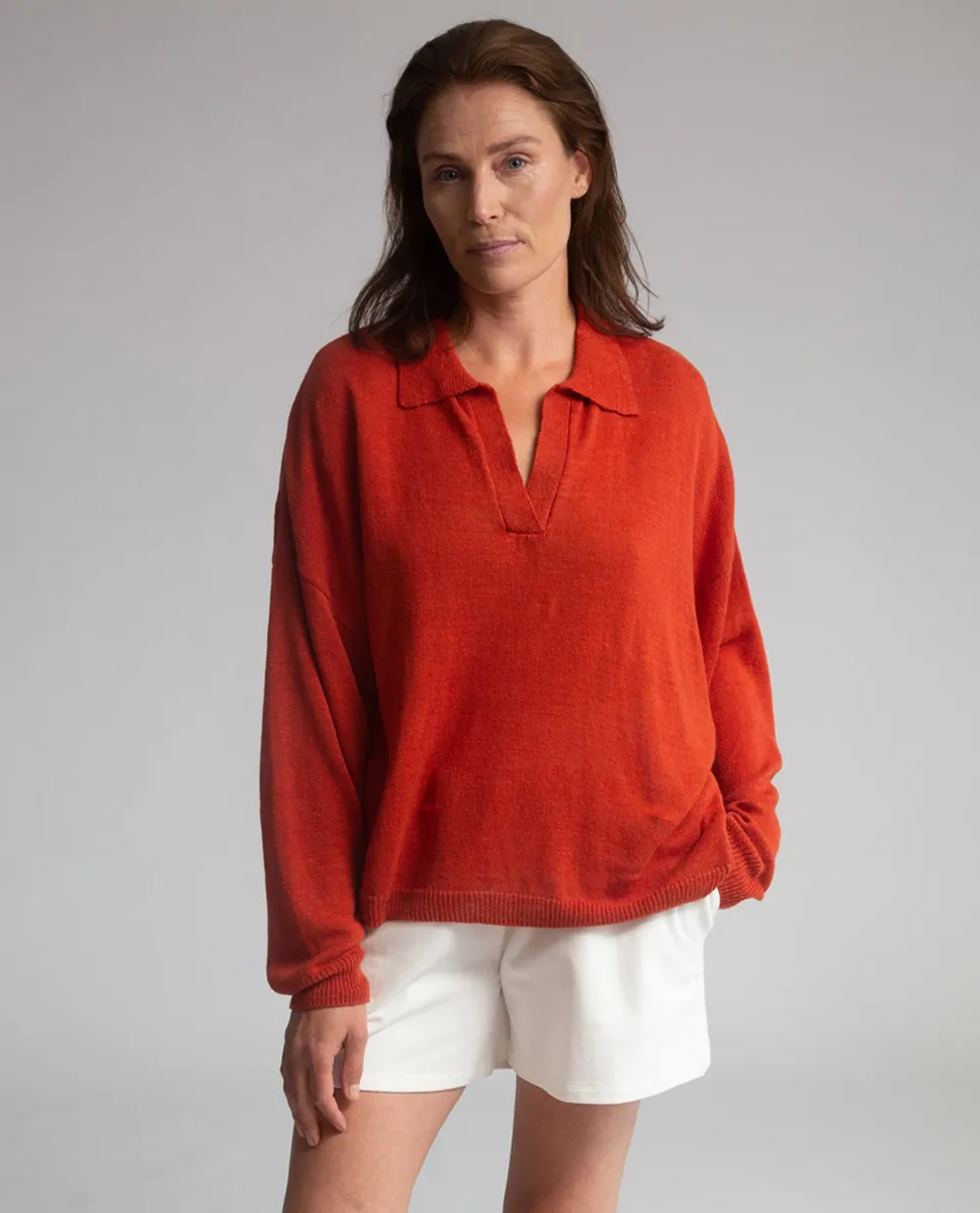 The Edith jumper is the perfect throw-on style for Spring in a beautiful ribbed fabric. Featuring a v-neck collar with placket detail and softly gathered ribbed cuffs. THINGS TO KNOW:- Made from 100% organic cotton- Made ethically in Portugal- Hand wash only. Dry flat. Do not tumble dry.  SIZE & FIT: Shalke is 5'10" and wears Size Small. Length of garment: 55cm.This style is an Oversized fit. See size guide for more details. SUSTAINABILITY: Fabric Composition 100% Organic C