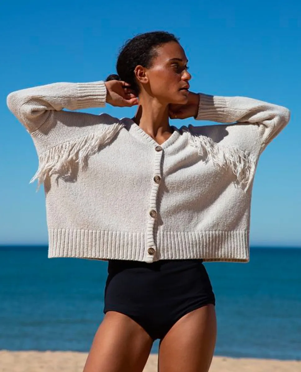 Fleur Recycled Cotton Cardigan In Off-White — Beaumont Organic | FIBER