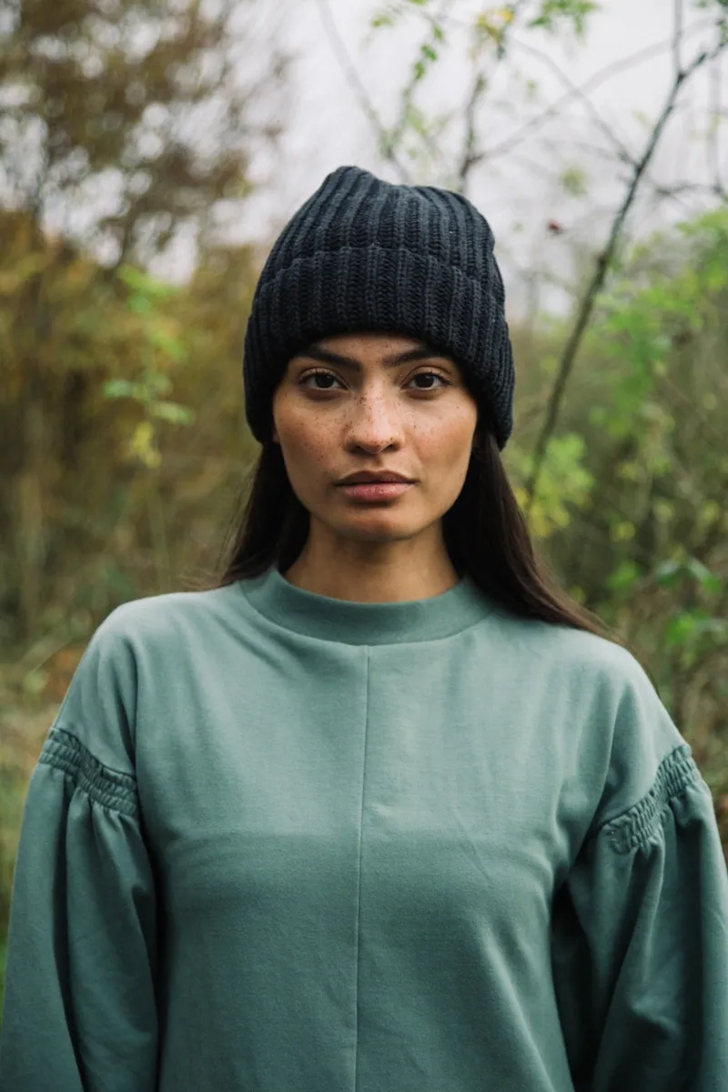 The Hilda is a classic rib beanie hat. Made from 100% Organic Cotton Made ethically in Portugal Hand wash SUSTAINABILITY: Fabric 100% Organic Cotton Sewn (Location / Factory) Portugal / J. Rodrigues Finished Portugal / J. Rodrigues