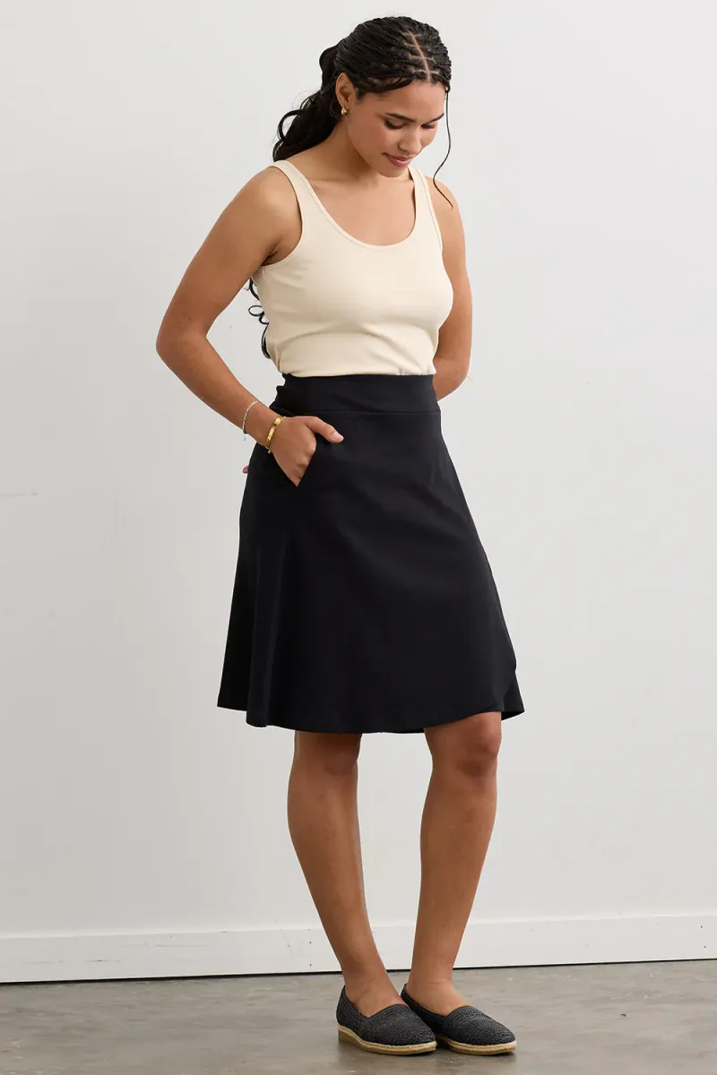 Our Luxe Organic Pima Cotton Faux Wrap Skirt combines graceful style with everyday comfort. The faux wrap design offers the look of a classic wrap skirt without the fuss. And a cleverly hidden side pocket adds practical charm - because who doesn’t love a pocket! 100% organic Pima cotton interlock Fair Indigo's cotton, yarns, fabrics, and dyes are GOTS certified Machine wash Comfortable flat-lying waistband with elastic One hidden side pocket to stash your phone 24 inches long (size Medium) Fai