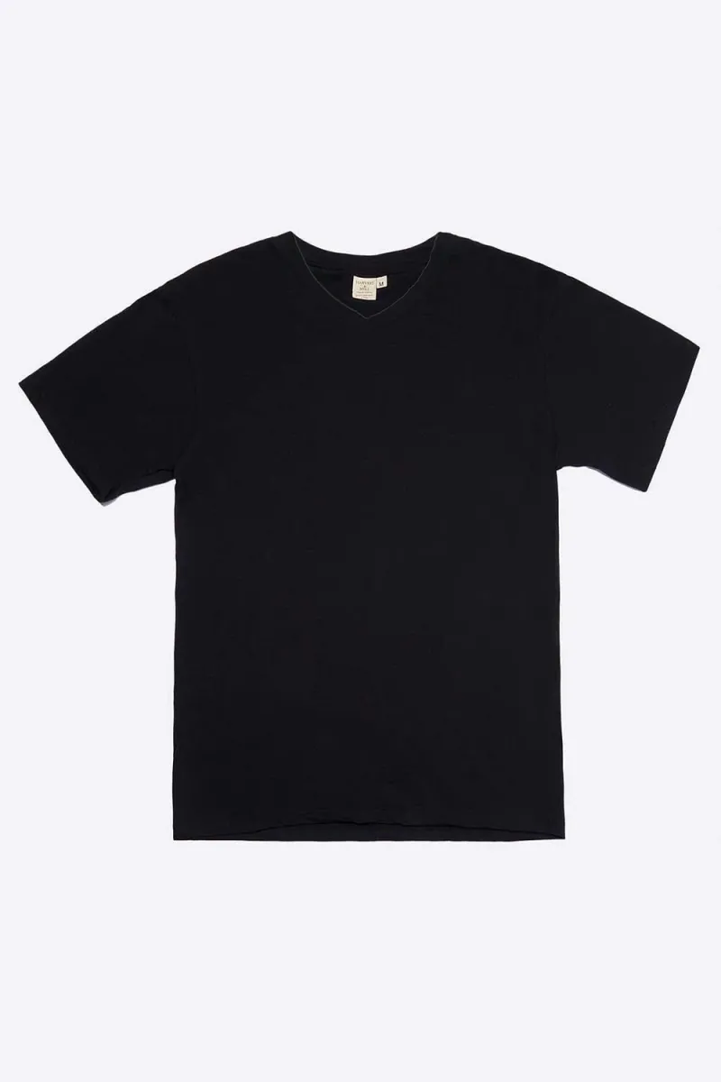 Made to be your daily wearer. Same design and fit as our bestselling Crew Tee but with a stylish shallow V neckline. Built with 4.3 ounce 100% organic cotton jersey, this fabric is the perfect weight and ideal for tee shirts. Soft, flexible feel on the body with rib collar for a clean look. Fits true to size. Style #V03B Fabric: 100% organic cotton USA grown Origins: Organic cotton grown in the USA, yarn spun and knit in the USA, sewn in the San Francisco Bay Area. Entirely USA domestic supply