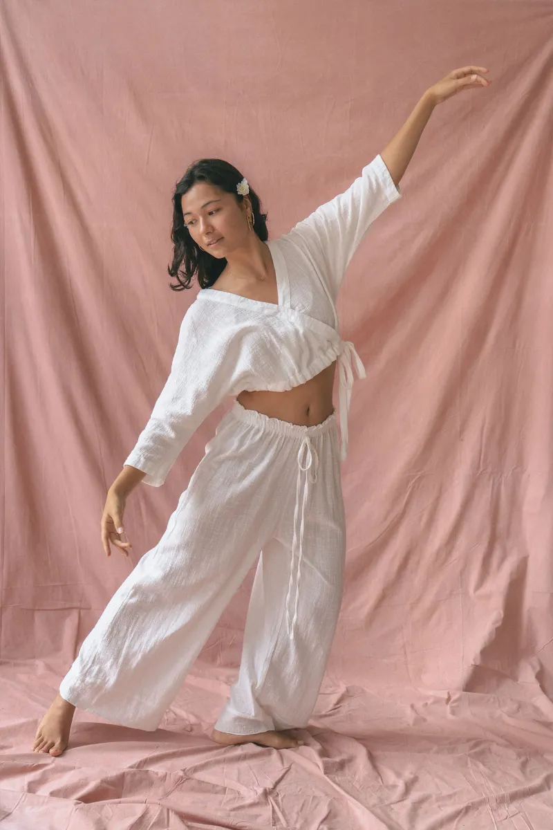 Inspired by slow mornings and sacred movement, the Flow Pants offer a dreamy, loose-fitting silhouette designed for ultimate comfort and effortless wear. Crafted in our airy Organic Cotton Gauze, they’re made to move with you from yoga and meditation to everyday living.