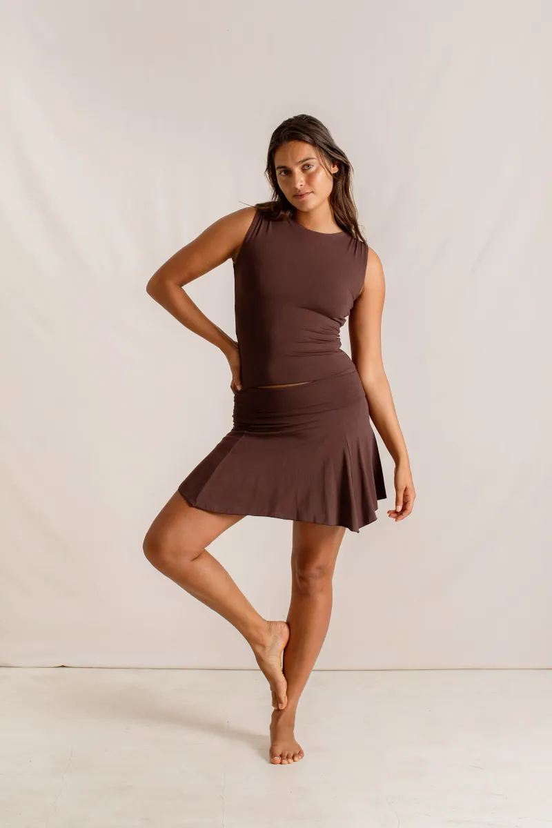 The new Layla Skort brings together our signature folding waistband with a flowing hemline and hidden shorts. Made with Plant Viscose and a fuller cut than our Earth Angel Skort, we designed this piece so you can move freely.