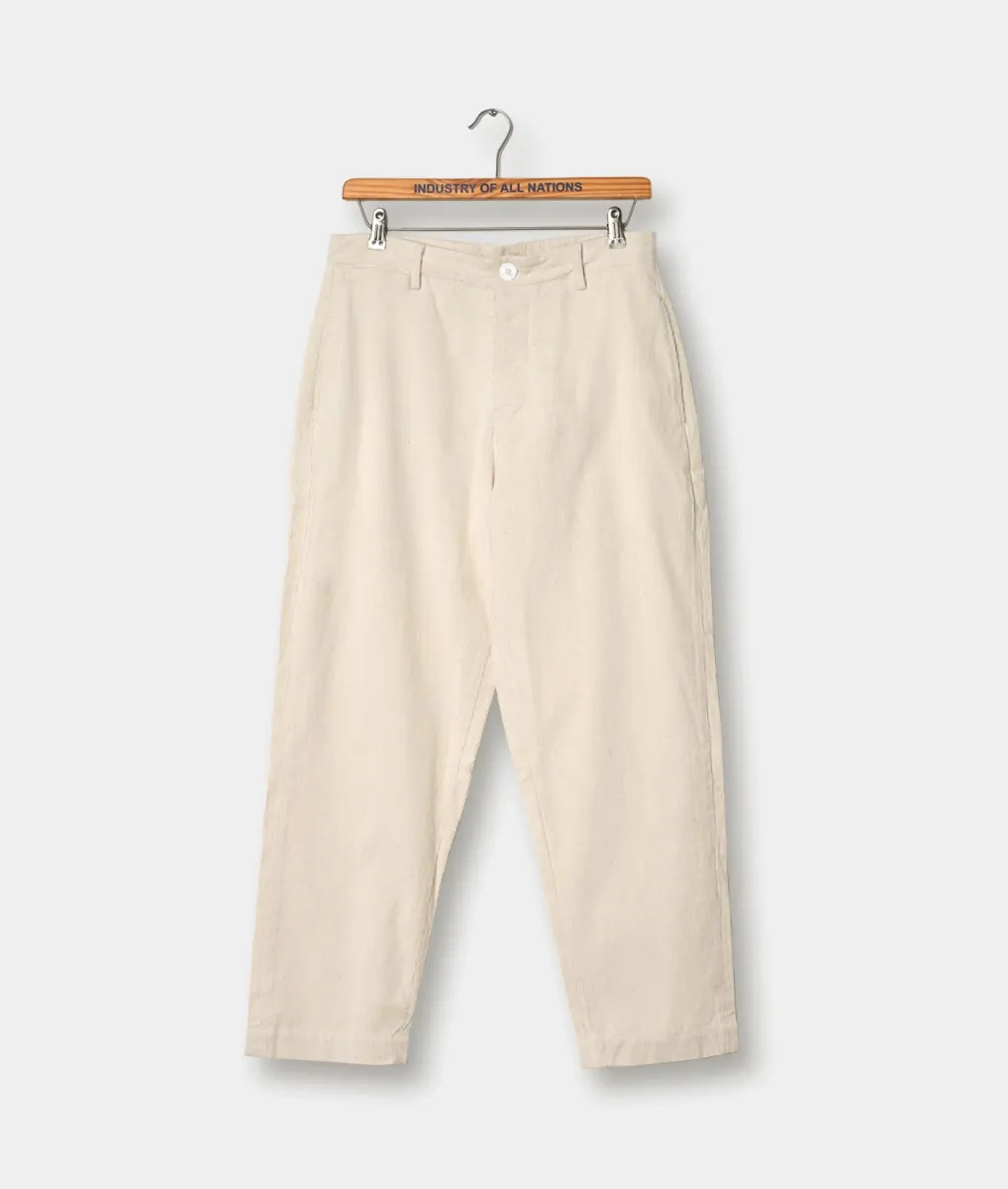 These Corduroy Pants, made in Tamil Nadu, India, utilize locally sourced 100% organic cotton and feature a unique river shell button fly. The thin wale corduroy fabric ensures superior breathability while providing enough substance for comfortable wear throughout all seasons.