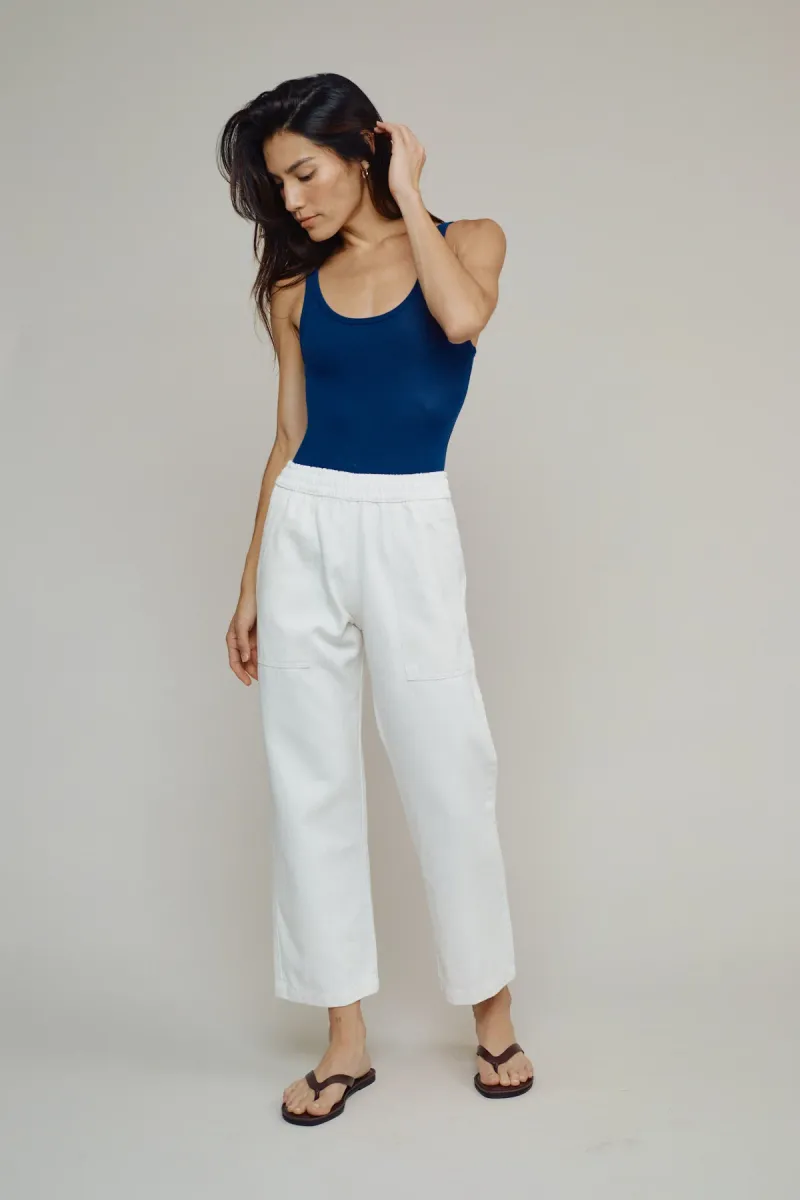 A versatile pull-on pant with wide, slouchy legs for effortless style. The high waist flatters, while a hidden drawcord and relaxed fit through the hips and thighs offer all-day comfort. Cropped length keeps you dry in rising tides and adds a retro touch with sneakers or sandals. Perfect for easy, elevated everyday wear.