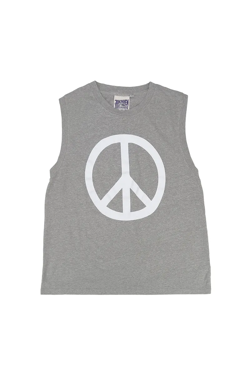 The Peace Tee graphic is a reminder to constantly strive for Peace, both within ourselves and worldwide. Screen-printed with eco friendly water based ink on our buttery soft Heathered Malibu Muscle Tee.