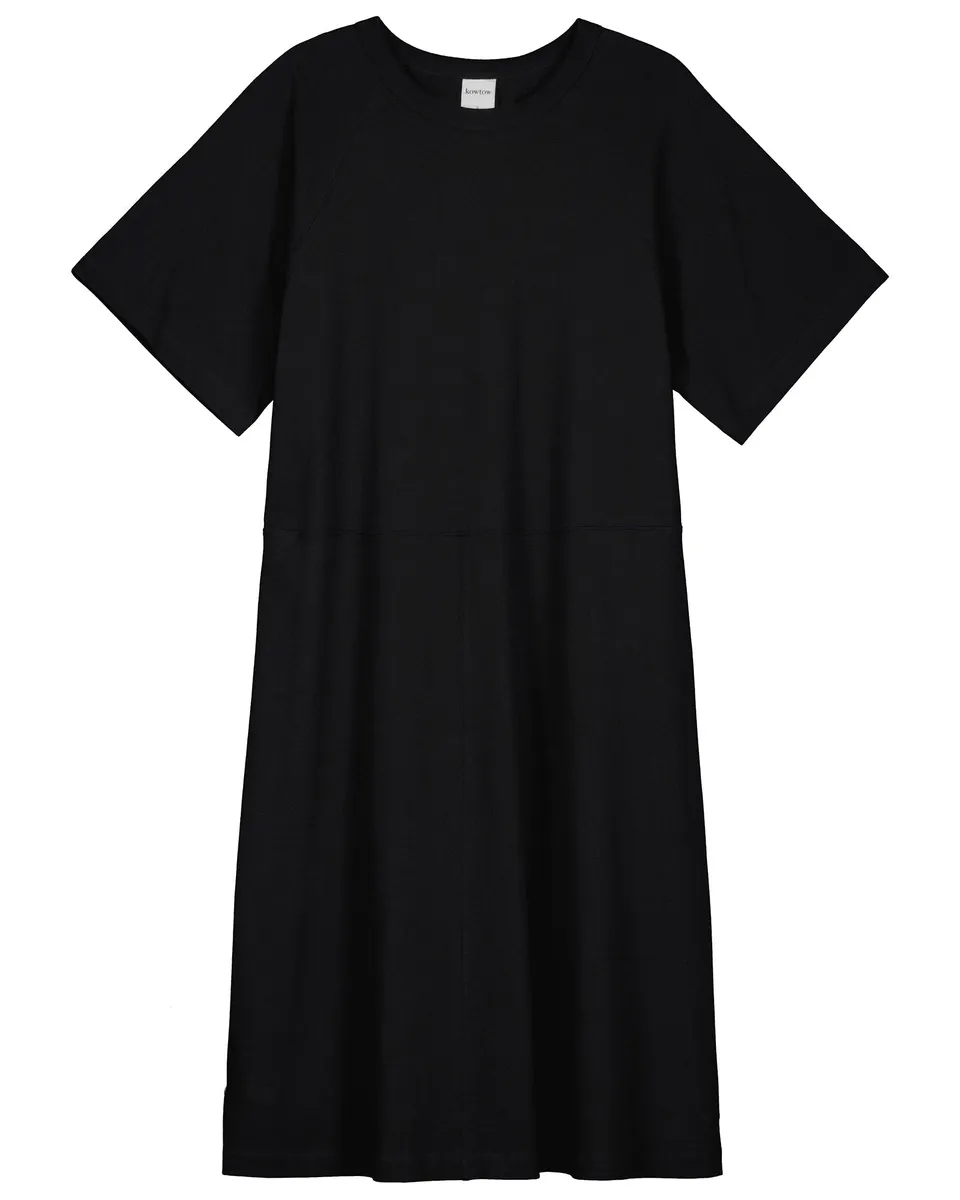 An easy-wear dress that features a raglan style sleeve and panelling throughout. The Blake Dress has a relaxed fit dress, ribbed neckband and finishes at knee length. Made in a midweight organic cotton jersey.