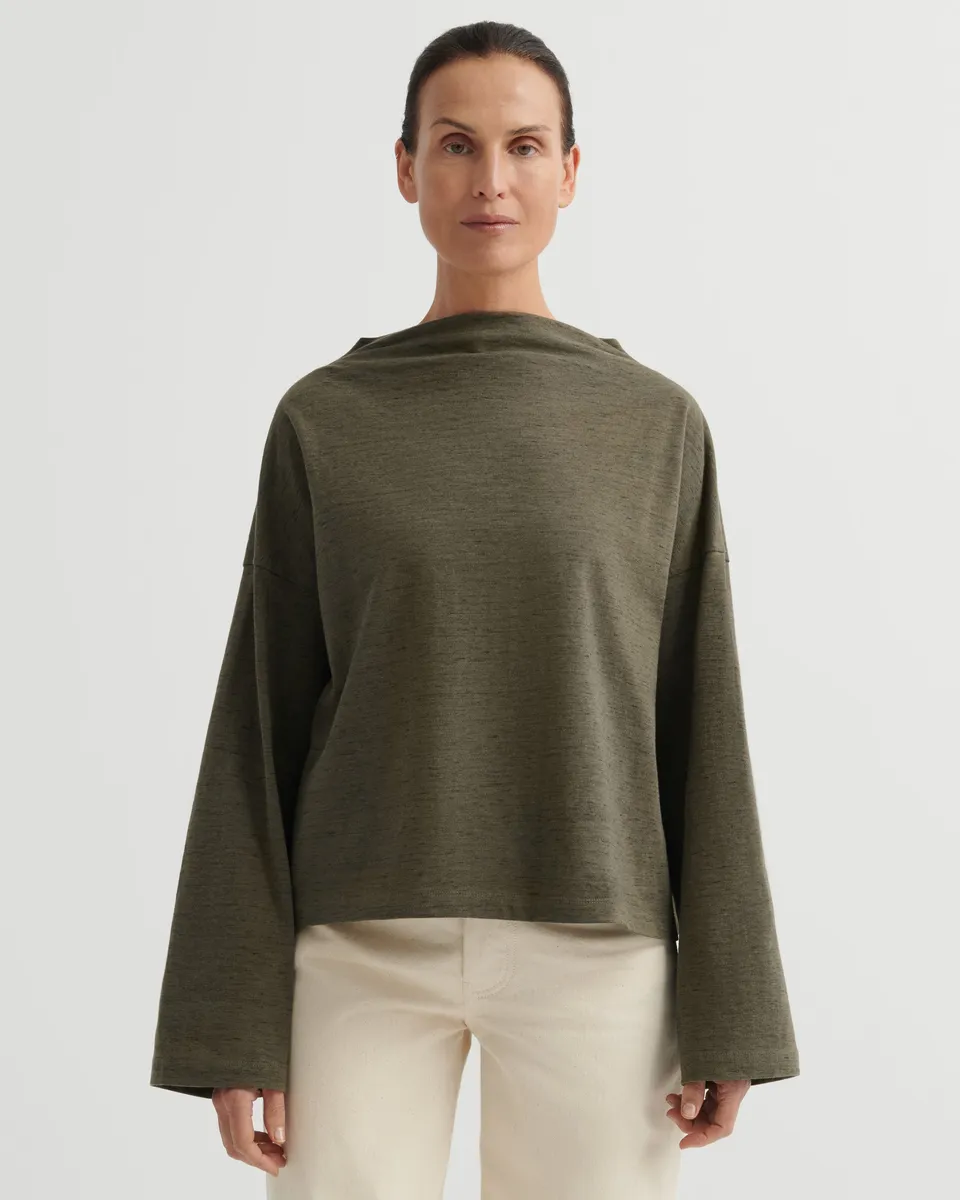 Structured. Clean. Intentional.An oversized top, finished with a wide funnel neckline, drop shoulder and wide sleeves.Wear solo, or layered up.