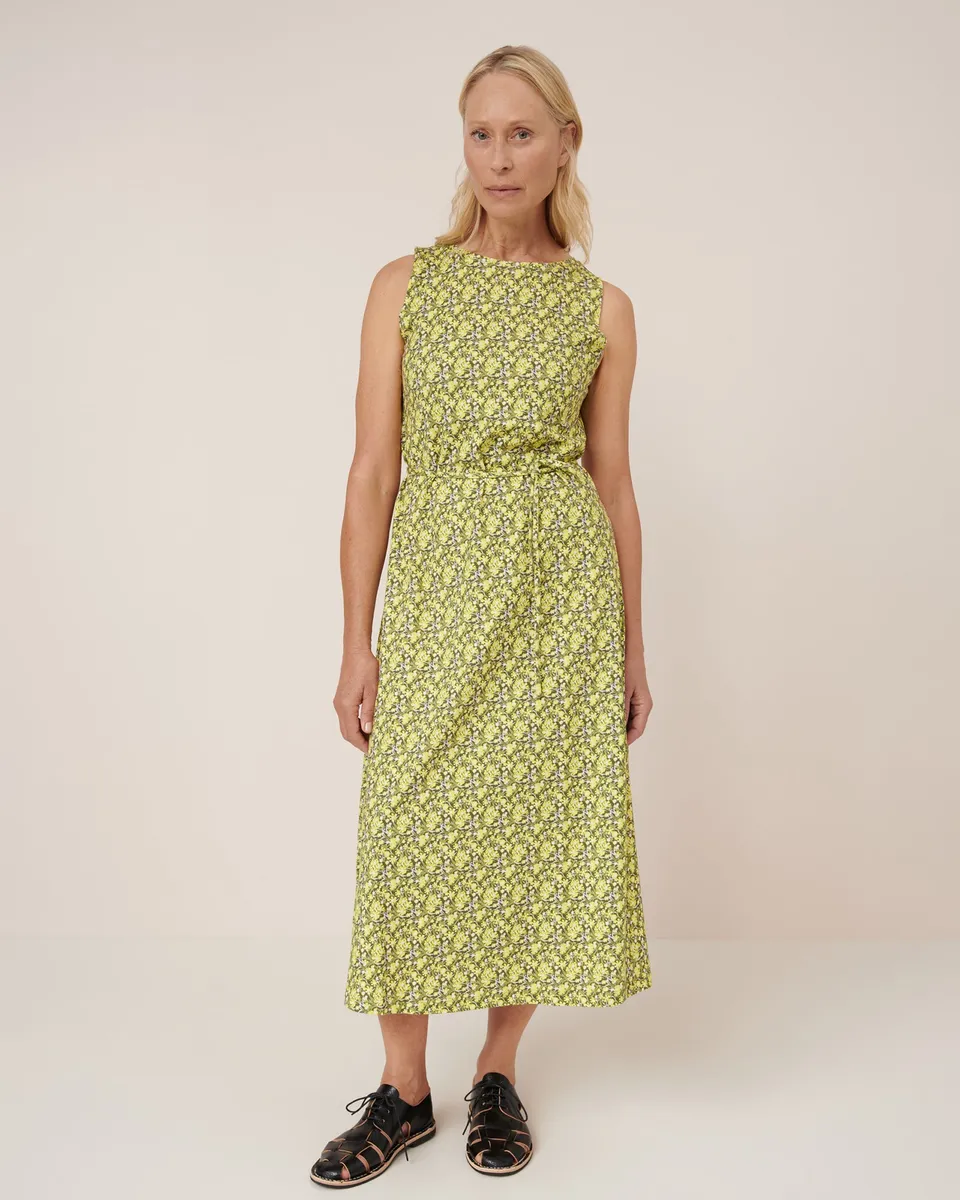 The Flora Dress is a relaxed, easy-wear style designed with an a-line shape for a comfortable, off the body fit. A printed version of our Tank Swing Dress, it falls to ankle length and features our signature twisted side seams. Made from midweight organic cotton jersey and printed in our hand-drawn Flora print. It can be worn loose or cinched in at the waist with the narrow, self-fabric tie. All Fairtrade organic cotton. All plastic-free.