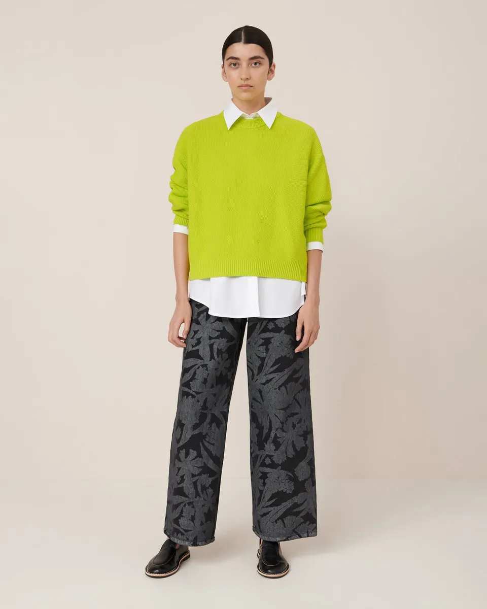 A relaxed take on our Escape Crew, the Hero crew is an easy-wear style in a bold Fluro Yellow colourway. Designed for an oversized fit, it features a crew neckline and is knitted in a soft organic cotton seed stitch. Finished with a narrow rib at the neckline, hem and cuffs for a refined touch. All Fairtrade organic cotton. All plastic-free.