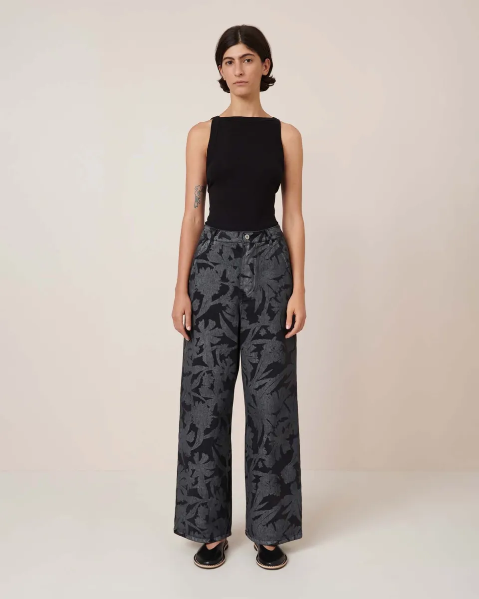 A wide leg jean with a relaxed silhouette, designed to sit high on the waist with a standard fit. The Utility Jeans feature oversized angled pockets and a concealed fly with nickel-free tacks. Made from midweight organic cotton in our Etched Denim, adding a playful touch to this versatile style. All Fairtrade organic cotton. All plastic-free.