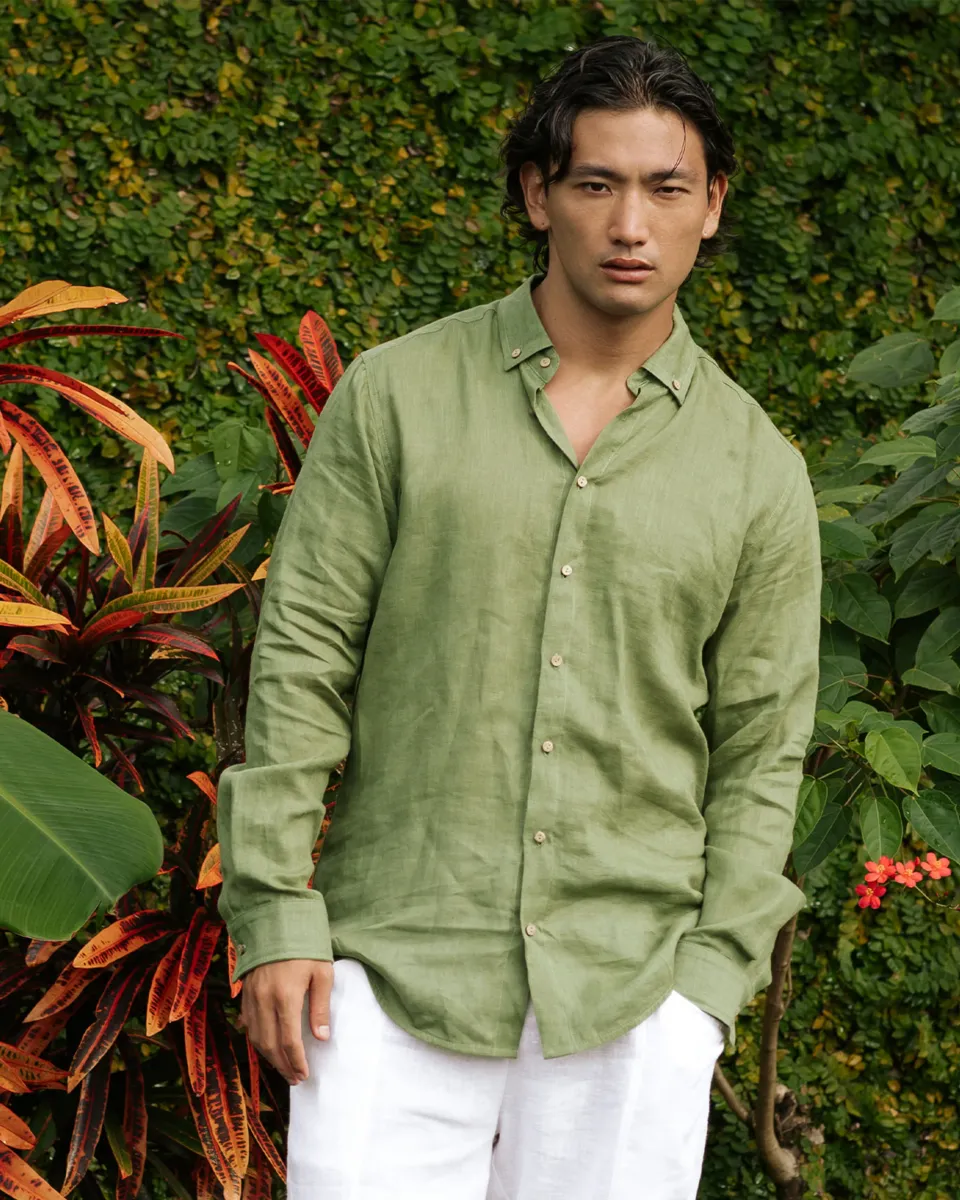 This classic button-down linen shirt Nevada in Forest green is crafted from lightweight linen and will be a perfect choice for hot summer days. Pair it with a blazer or jacket - this shirt can easily go from casual to formal.• Regular fit• Lightweight linen (approx. 125 gsm)