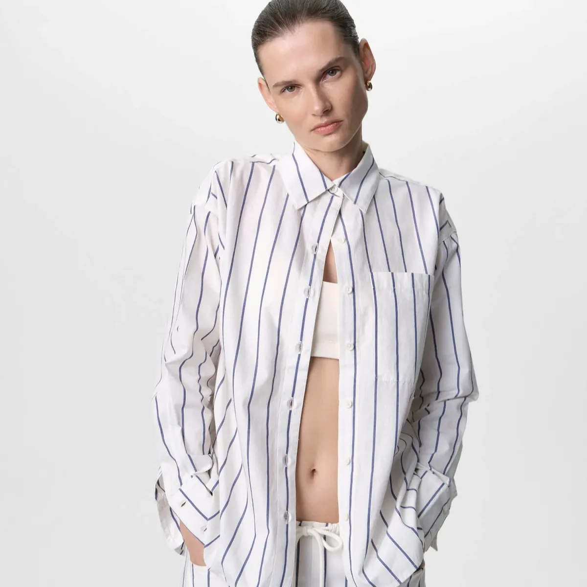 - GOTS Certified Organic Poplin Long Sleeve Button Down - Classic shirting details in a relaxed, oversized fit Our Organic Poplin is made from 100% GOTS-certified Organic Cotton with a crisp, breathable hand and refined structure. - 100% Organic Cotton- GOTS Certified Organic Cotton- Machine wash cold with like colors - Tumble dry low - Do not bleach- Made in IndiaPlease note that there can be slight differences in the coloration of our products across different fabrications. To ensure no colo