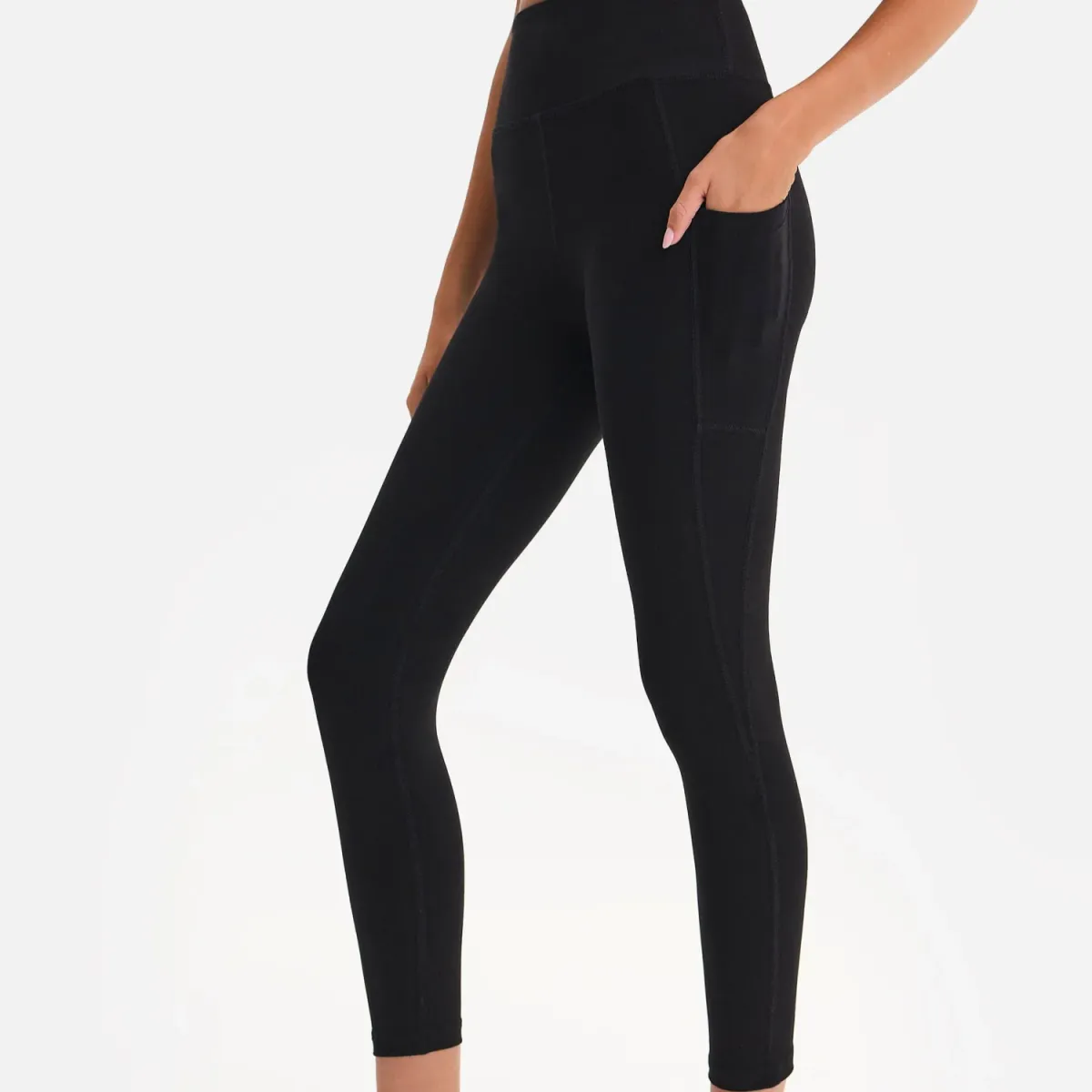 -GOTS certified Organic Stretch Midi Legging with Pockets-Our bestselling Midi Legging now with side pockets-Made for low to medium impact activity-22.5" inseam on size small - Made with 92% Organic Cotton, 8% Spandex- GOTS Certified Organic Cotton - Machine wash cold with like colors - Tumble dry low - Do not bleach- Made in IndiaPlease note that there can be slight differences in the coloration of our products across different fabrications. To ensure no color discrepancy in your set, we recom