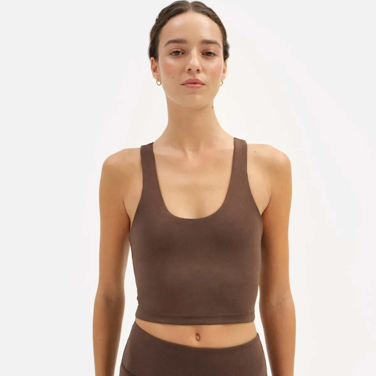 GOTS Certified Organic Stretch Racer Tank. Cropped tank featuring a built-in shelf bra, made for low impact activity. If you are between cup sizes or prefer some room in your band, we recommend sizing up. - Made with 92% Organic Cotton, 8% Spandex- GOTS Certified Organic Cotton - Machine wash cold with like colors - Tumble dry low - Do not bleach- Made in IndiaPlease note that there can be slight differences in the coloration of our products across different fabrications. To ensure no color di