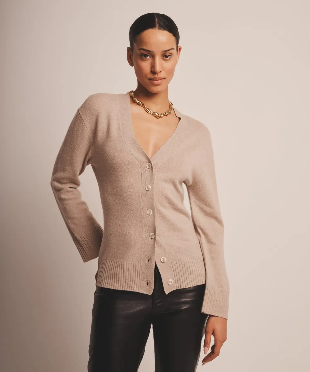 The Cashmere Fitted Cardigan is a modern, yet timeless knit with a classic fit and length. It features a v neckline, hourglass silhouette, button front, and contemporary ribbed details. Crafted from 100% premium, sustainable cashmere.