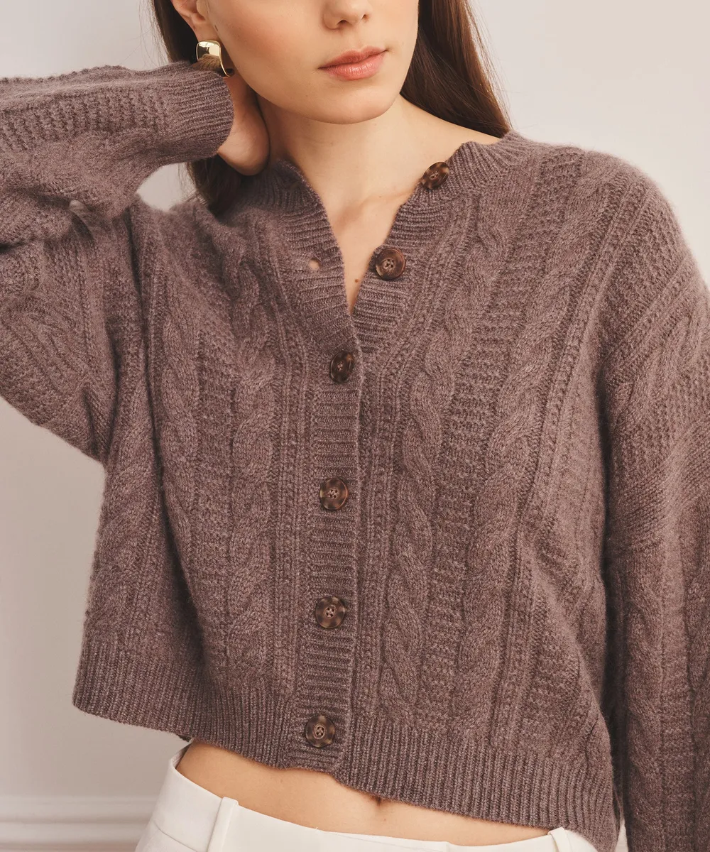 Cable-knit luxury. The Super Luxe Cashmino Cable Cardigan is crafted from our heaviest, ultra-soft cashmino with an oversized fit and short length. A statement layer that feels unbelievably cozy while effortlessly elevated.